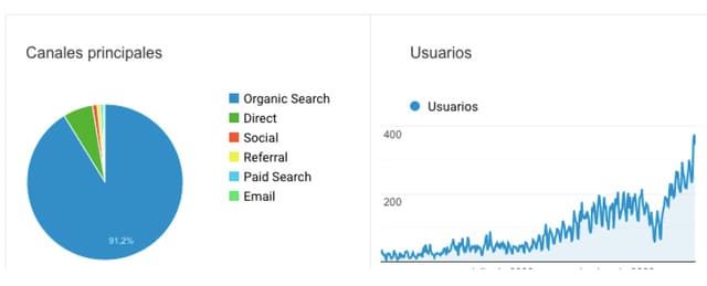 Gráficas de mejora de visibilidad y visitas a la web de clientes